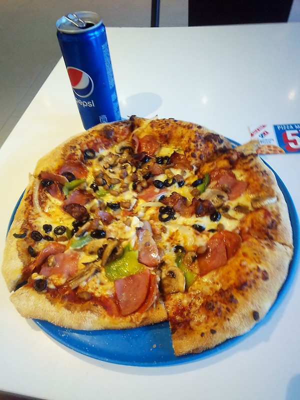 Yo el Dominos solo lo piso para pillar el come y bebe de 11 ñapos con panes de ajo y tiras de pollo de entrantes y a continuación todas las cremosas estilo bourbon que quepan en mi interior rellenando el cubo con ese agua chirla que llaman pepsi.