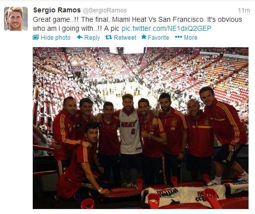 <blockquote class="twitter-tweet" lang="es"><p>Después de días fuera, aquí otra vez. Nuevo objetivo con la Selección, la Copa Confederaciones. Vamos España..!! <a href="http://t.co/xhQqpndwXl" title="http://twitter.com/SergioRamos/status/342727222358069248/photo/1">twitter.com/SergioRamos/st…</a></p>— Sergio Ramos (@SergioRamos) <a href="https://twitter.com/SergioRamos/status/342727222358069248">6 de junio de 2013</a></blockquote>